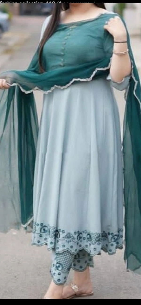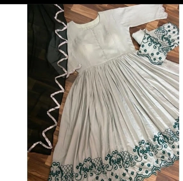 New Pista Ice Gray Anarkali Kurti And Plazzo With Duppata
